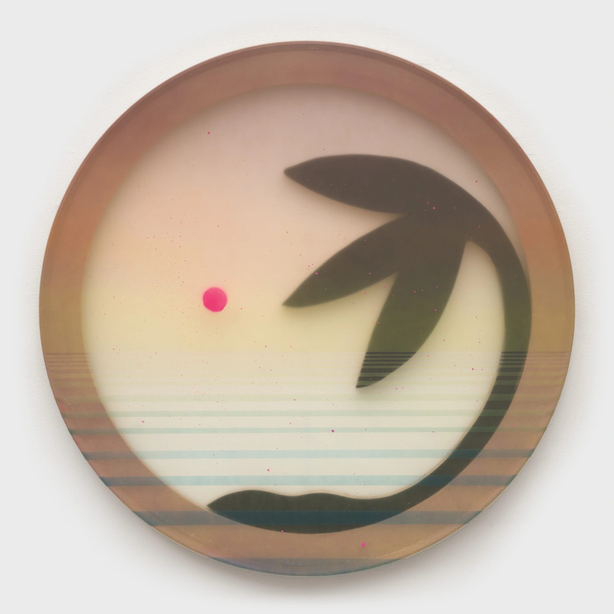 are inspired by vintage surf logos and the sunset viewing ritual in The Florida Keys. Each painting is alkyd on vinyl with a sculptural inset.